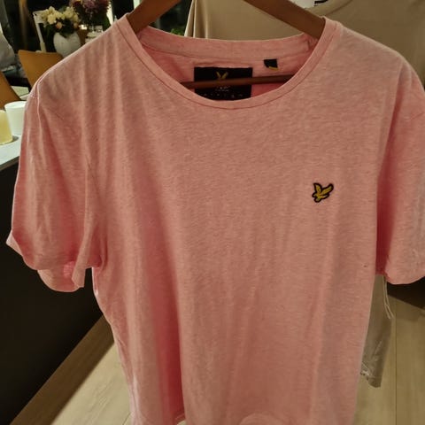 Rosa t-skjorte fra Lyle & Scott med brodert logo på brystet.