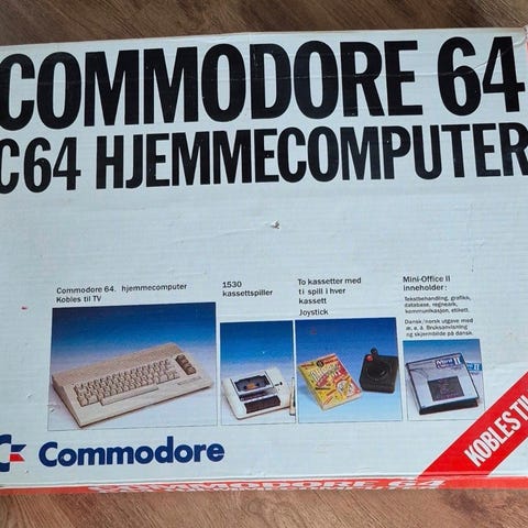 Std. Commodore power supply der 5Vdc delen er erstattet med en moderne Switch mode Power Supply. 400Kr. Ellers følger det med en std. C64 PSU (den funger, men disse er ofte utsatt for feil som kan forårsake defekte chip-er pga for høy spenning).
