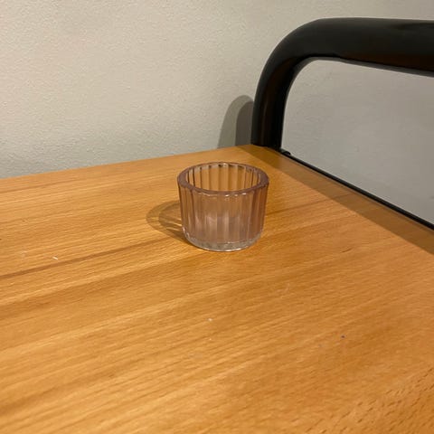 - 2 runde telysholdere i klart glass med metall- eller mønsterdetaljer
