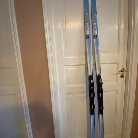 Fint lite brukte ski med rottefella binding. 195 cm lange beregna for 60-75 kg. Staver lengde 135 cm er med dersom ønskes. Sender ikkje skia.