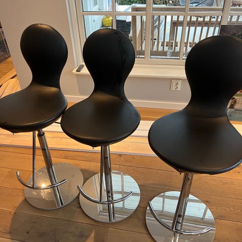 3 stk Varier eight barstol i brunt skinn selges samlet ved henting . Pent brukt og i god stand . Selges pga flytting . Passer utmerket til kjøkkenbenk