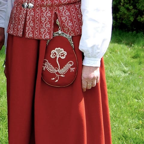 Selges med belte med sølv, mansjettknapper og sølje i hals.