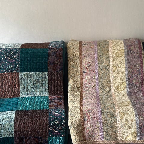 IKEA pynteputer i rosa og beige farge. Putene har myk tekstur og rektangulær form, egnet som dekorative puter i sofa eller på seng. Passer til bruk i stue eller soverom for ekstra komfort og støtte.