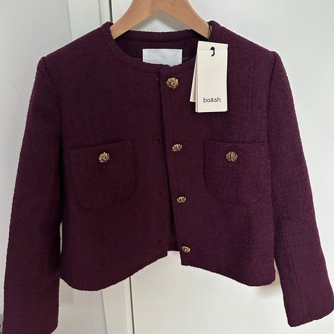 Ganni skinnjakke/ skjorte beige dame størrelse 38