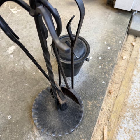 Ildsted sett med peisredskaper i svart metall. Settet består av tre deler: to ulike typer spader og én ildrake/poker. Egnet til bruk ved peis eller ovn for håndtering av aske og ved. Utførelsen i metall gir god slitestyrke ved vanlig bruk i forbindelse med fyring innendørs.