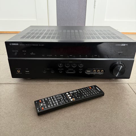 Yamaha hjemmekinoreceiver i sølvfarge.