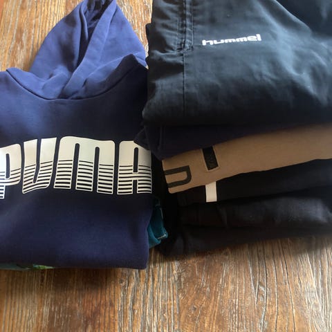 Fint brukt. T-skjorten, den grå i midten er litt nuppete ellers er alt fint brukt. Den blå genseren er brukt en gang.
