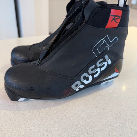 Rossignol X-6 Combi langrennsstøvler i størrelse 36. Modellen er til klassisk/skøyting og har høy ankelstøtte med justerbar hælrem for bedre stabilitet. Overdelen er i syntetisk materiale med glidelås og snøring under beskyttende klaff. Sålen er kompatibel med vanlige Rottefella bindinger for langrenn. Farge hovedsakelig svart med røde og hvite detaljer.