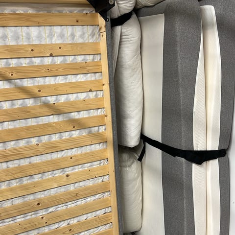 Senger er i god stand, madrassenere er rene, og madrasstrekket er vasket. Overmadrassen er skitten og trenger rengjøring. Hvis du vil hente den, gir vi den bort. Hvis du bor i Oslo, kan vi ordne levering mot et gebyr.