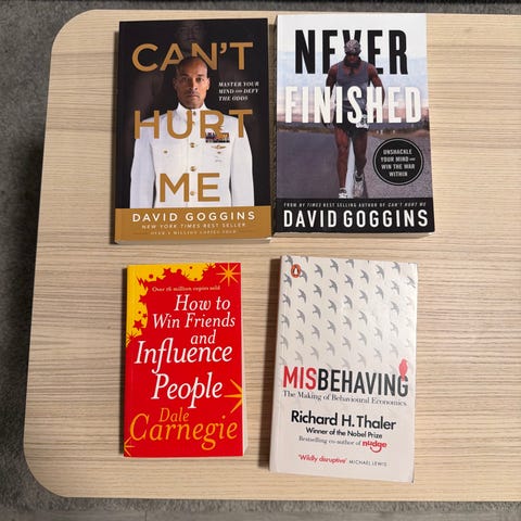 Bokpakke med faglitteratur innen psykologi, forhandlinger og personlig utvikling.