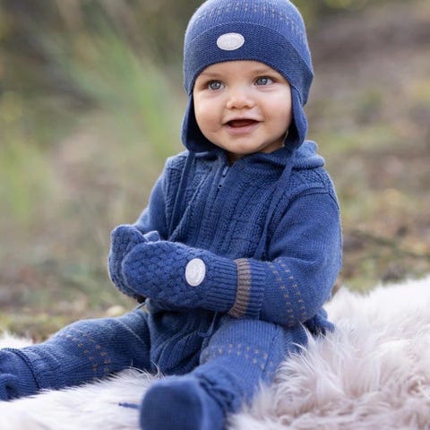 Søt blå bjørne dress i størrelse (3-6 måneder). Myk og god og holder godt varmen.