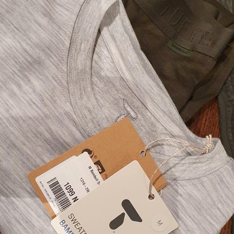 Selger nytt bambull begge str L. Grå overdel rund hals mørk blå underdel. Samlet 799 ferdig pruta frakt 69 vipps. Kostet 1900