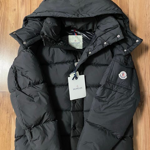 Jakken er svart og fylt med dun, noe som gir god isolasjon i kaldt vær. Den har glidelåslukking foran og glidelåslommer i siden. Hetten er festet på jakken. Innvendig har jakken merkelapp med Moncler-logo, vaskelapp med QR-kode og illustrert instruksjonslapp. Ta gjerne kontakt