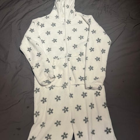 Kosedressen er svart og laget i polyamid. Modellen har lange ermer og hette, med kontrastfelt over skuldrene og på sidene. Buksen er i 3/4 lengde. Mykt materiale som gir et behagelig plagg til hverdags. Liten slitasje nede ved glidelåsen.