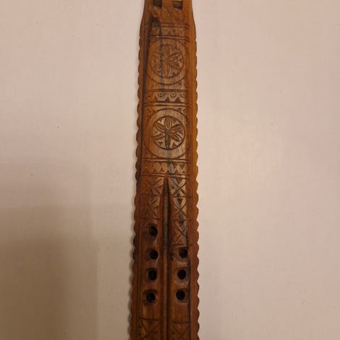 Tradisjonell, pent utskåret dobbel trefløyte (opphav Mexico?)