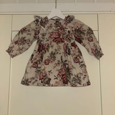 Konges Sløjd kjole for barn i størrelse 18 mnd. Kjolen er laget i 100% merinoull og kommer i brun farge. Modellen har lange ermer og rund hals. Baksiden har knappelukking i nakken. Passer til jente og egner seg til hverdagsbruk eller som en enkel penkjole i kjøligere vær. Materialet i merinoull gir et mykt og behagelig plagg for barnet.