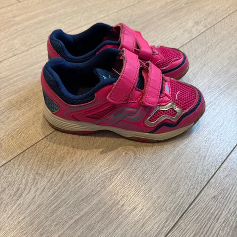 Hvite joggesko for barn med borrelås og lisser. Skoene har overdel i pustende mesh med syntetiske detaljer og polstret innside i blått. Yttersåle i gummi med blå detaljer gir godt grep. Egnet til hverdagsbruk og lett aktivitet både inne og ute.