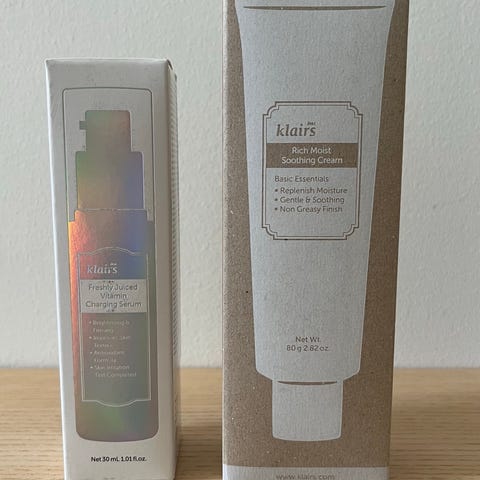 Klairs C-vitamin serum + Midnight Blue Calming Cream – NYTT (kort holdbarhet)