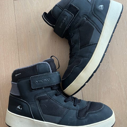 Viking barnesko Gortex for alle årstider, unisex, størrelse 38. Skoen har snøring kombinert med borrelås øverst for bedre passform. Farge blå. Egnet som hverdagssko for barn og unge i overgangssesonger eller milde vinterdager.