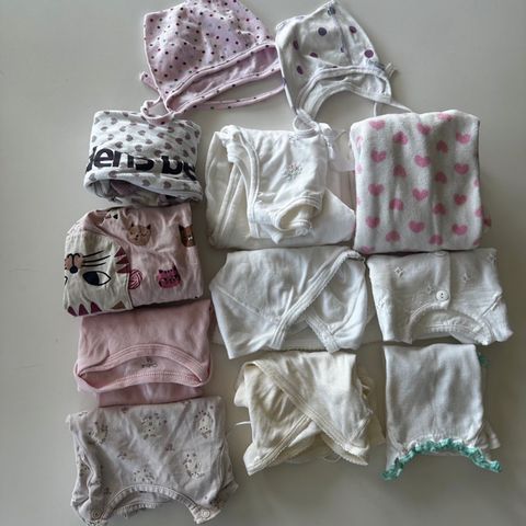 Klespakke i str. 56 selges. Innholdet klær fra newbie, ullsett fra devold, hm, hust and Claire, Lindex og nameit.
