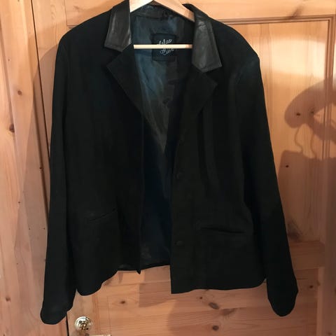 Vintage blazer i sort semsket skinn.