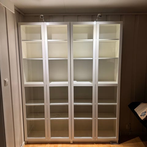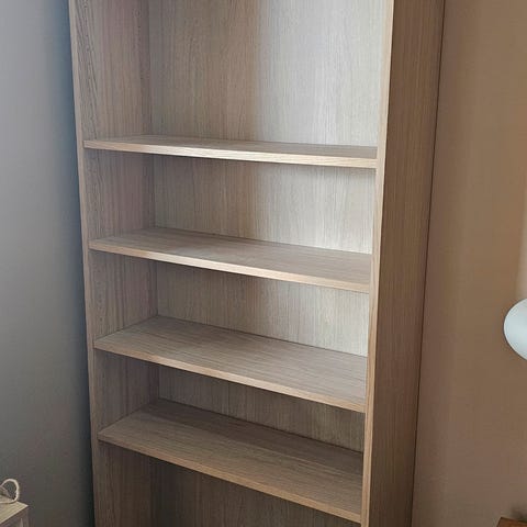 Ble bygget med hjelp av min datter, da vi uheldigvis fikk noen små skader som er lett å gjemme med pynt, bøker eller flytte hyllen ett hakk oppe.