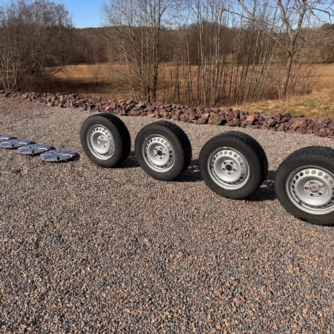 Disse har stått på VW Transporter men passer flere biler. Gode dekk, kun brukt noen mnd.