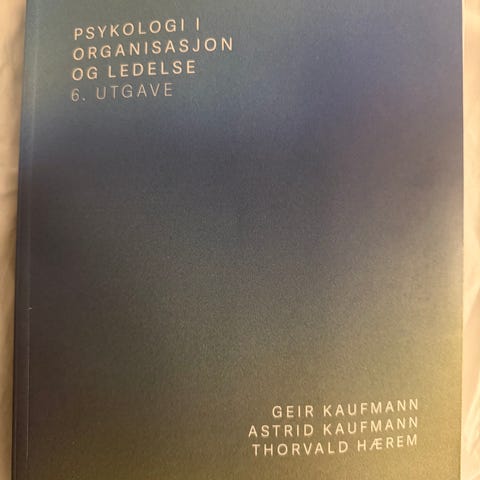 2) "Psykologi i organisasjon og ledelse" (6. utgave) av Geir Kaufmann, Astrid Kaufmann og Thorvald Hærem, utgitt på Fagbokforlaget. Boken tar for seg psykologiske perspektiver på organisasjoner, arbeidsmiljø, motivasjon, beslutningstaking og ledelse.