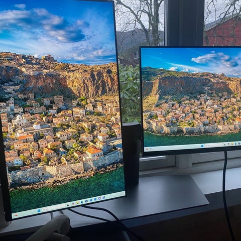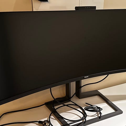 Skjermen har ultrabredt format som egner seg for arbeid med flere vinduer samtidig, samt generell kontorbruk og underholdning.