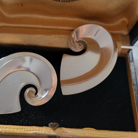 Øredobbene er i forgylt sølv, og er klips.