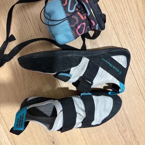 Black Diamond Momentum er bygget med komfort i fokus og kombinerer en flettet overdel og formstøpt såle. Overdelen sørger for meget god passform og komfort, samtidig som det transporterer svette godt! Sålen er veldig nøytral og myk og gjør skoen til en perfekt allrounder enten på cragget, lange ruter utendørs eller i buldrehallen. To velcro-stropper sørger for optimal passform!