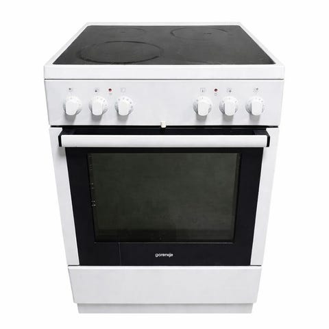 Electrolux keramisk komfyr i hvit utførelse. Komfyren har keramisk topp med betjeningsknapper foran og stekeovn med glassdør. Under ovnsdelen er det oppbevaringsskuff for kjeler eller stekeutstyr. Passer til vanlig matlaging og baking på kjøkkenet i bolig eller hytte.