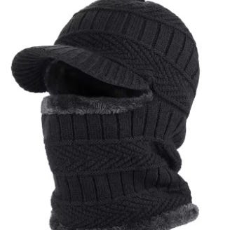 Men's Knitted Baseball Hat with Earflap Insulation Warm Fur Lined Skullies Beanies British Style Riding Woollen Hat Pile Bonnet