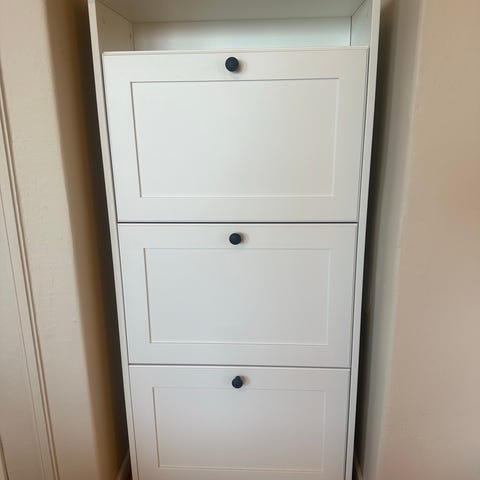 Selges grunnet mangel på plass. Har vært brukt samlet som et sett. Fint brukt. Den ene hyllen har pleid å stå sammen med tvbenken slik at den ble lengre.