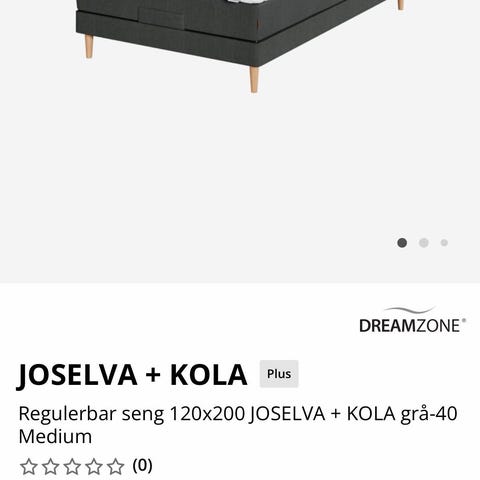 Selger en Jysk Jysk Joselva justerbar seng. Det er 90x210 cm med trådløs fjernkontroll. 1 vendbar madrass med pocket-fjærer 226/m², polstret med polyeterskum. Madrassen er inndelt i 5 komfortsoner som gir korrekt og optimal støtte. 1 overmadrass, 5 cm tykk med trykkavlastende memoryskumkjerne som former seg presist etter kroppens konturer. Vaskbart trekk i 100% polyester (100% resirkulert) med tykk, myk quilting. 1 regulerbar bunn. Ben/bøyler følger med.