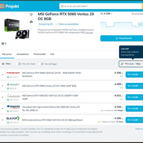 MSI Gaming GeForce RTX 5060 skjermkort. 8gb ram. Leveres i original eske som vist på bildet. Nesten ikke brukt.