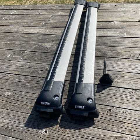 Thule takstativ i sølvfarget utførelse. Består av to lasterammer/bøyler som monteres på bilens tak. Egnet for montering av takboks, sykkelstativ eller annen taklast, avhengig av riktig festesystem til aktuell bilmodell. Laget i metall med plastdetaljer. Nøyaktig kompatibilitet avhenger av biltype og tilhørende Thule-fester.