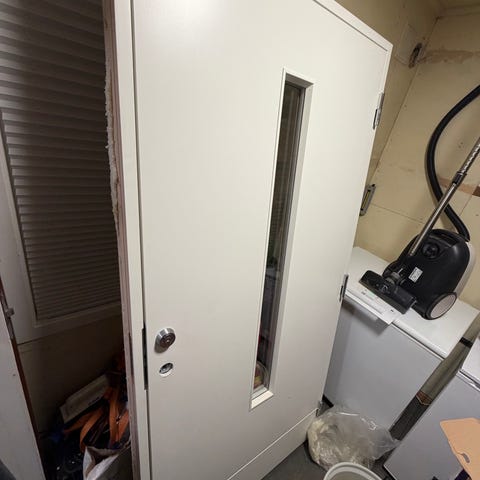 Ytterdør i svart farge. Døren har klasiske panel vindu og panelmønster. Leveres med dørhåndtak og lås. Egnet som inngangsdør til bolig eller leilighet. Passer i standard ytterdøråpning, mål må kontrolleres mot eksisterende karm før montering.