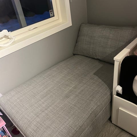 Bemztrekket har en liten rift i beskyttelsestoffet på selve sjeselong delen, men det er under putene og merkes ikke. Trekket blitt vasket med gode resultater flere ganger, nå er det en stund siden så det er skittent og trenger en ny vask. Selges derfor billig ved rask handel!