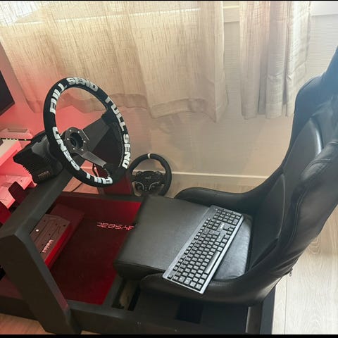 Rattet har flere programmerbare knapper, dreiebrytere og D-pad på fronten, samt lysindikator øverst. Det er montert på en direct drive-rattbase fra Moza Racing.
