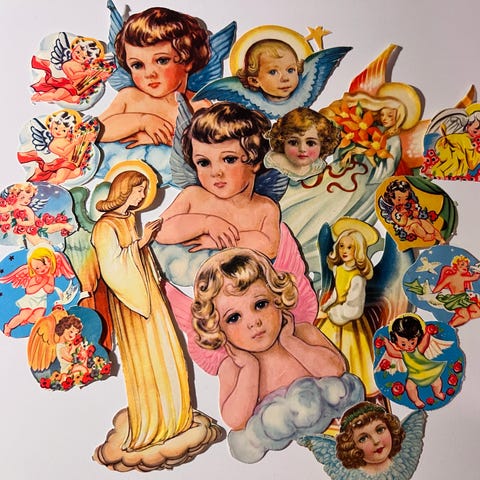 Lot gamle og antikke glansbilder