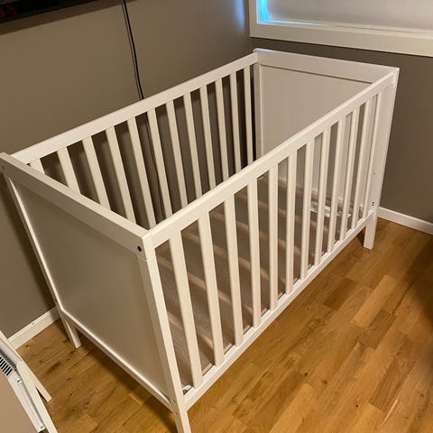 IKEA sprinkelseng i hvit utførelse. Klassisk barneseng med sprosser på alle sider som gir god oversikt til barnet. Passer standard madrassstørrelse for sprinkelseng (ikke inkludert dersom ikke annet er oppgitt i annonsen). Egnet for baby og småbarn i den perioden de bruker sprinkelseng. Enkel, nøytral design som passer inn på de fleste barnerom.