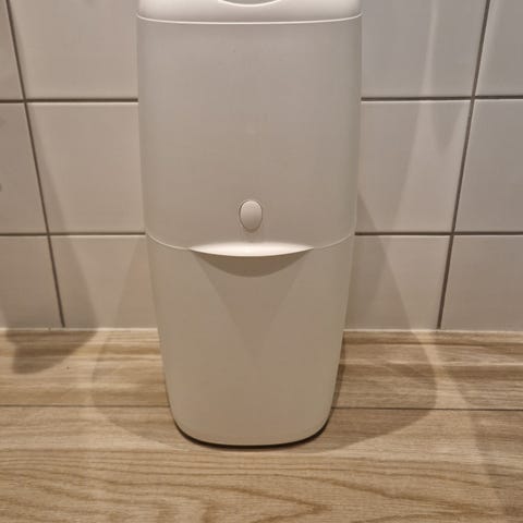 Bleiebøtten er beregnet for bruk med refill-kassetter som forsegler brukte bleier inne i bøtten. Lokket åpnes fra toppen, og innvendig sitter en blå ring for montering av refill. Egner seg til bruk på stelleplass eller barnerom for praktisk håndtering av bleier. Passer til engangsbleier og er laget for innendørs bruk.