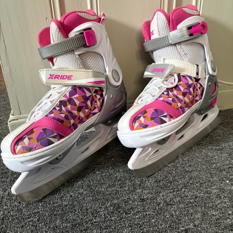 XQ Ride skøyter for barn i størrelse 33 til 36. Skøytene har justerbar lukking med spenner og borrelås, samt snøring for bedre tilpasning til foten. Overdelen er i syntetisk materiale med polstret innside for økt komfort. Fargekombinasjon i rosa, hvitt og grått med mønstret detalj på overdelen. Egnet til generell skøytebruk for barn på isbaner og lignende.Like gode x-ride skøyter justerbare mellom 33-36 i str.