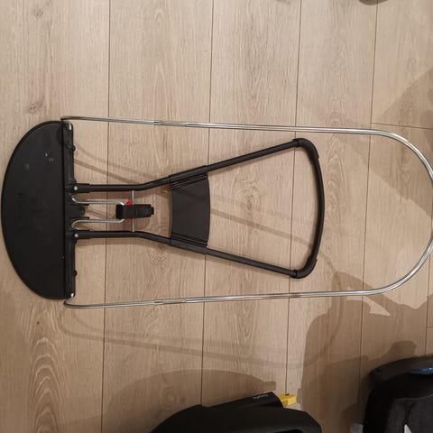 Babybjörn vippestol i lys grå/hvit farge. Stolen har mykt sete med sele foran for å holde barnet på plass. Stofftrekket er pustende i mesh og kan tas av for rengjøring. Pent brukt.