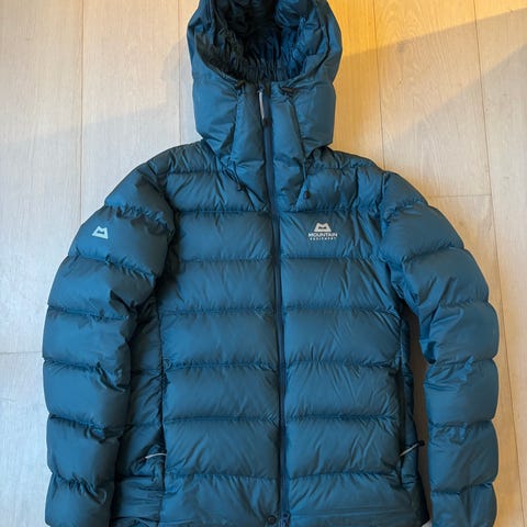 Følger med ubrukt pakkpose. Jakka har alltid hengt i boden når den ikke har vært brukt, aldri komprimert annet enn i sekken under vandring.