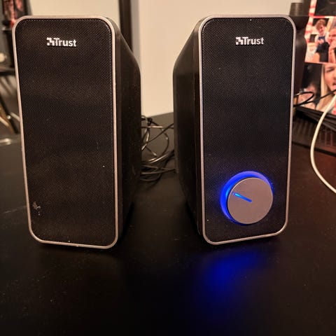 Selger et pent brukt Trust Gaming GXT 638 Tytan 2.1 høyttalersett. Dette er et kraftig sett som leverer hele 120W peak power (60W RMS), noe som gir et skikkelig lydtrykk til både spill, film og musikk.