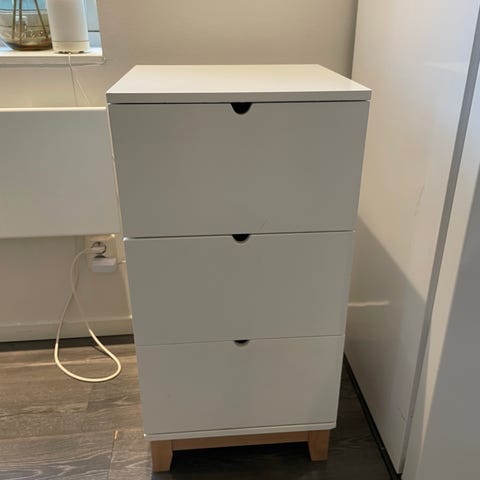 Hemnes skoskap fra IKEA. Skuff + to rom til sko. Må festes til veggen.