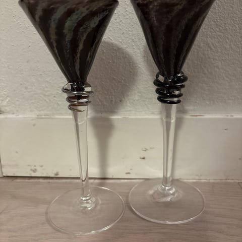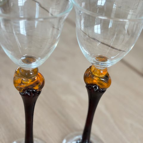 To flotte rødvinsglass med lekker stett i flott farge. Glassene har ikke vært i bruk.