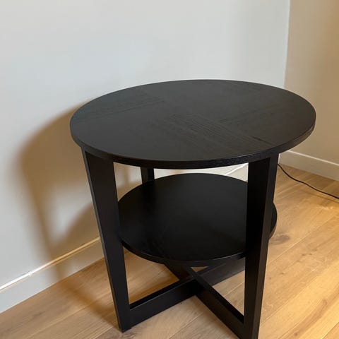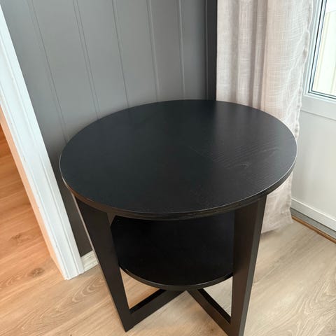 IKEA sidebord i svart, ingen bruksmerker. Egnet som lite avlastningsbord ved seng, sofa eller i entré, samt som nattbord eller plantebord.